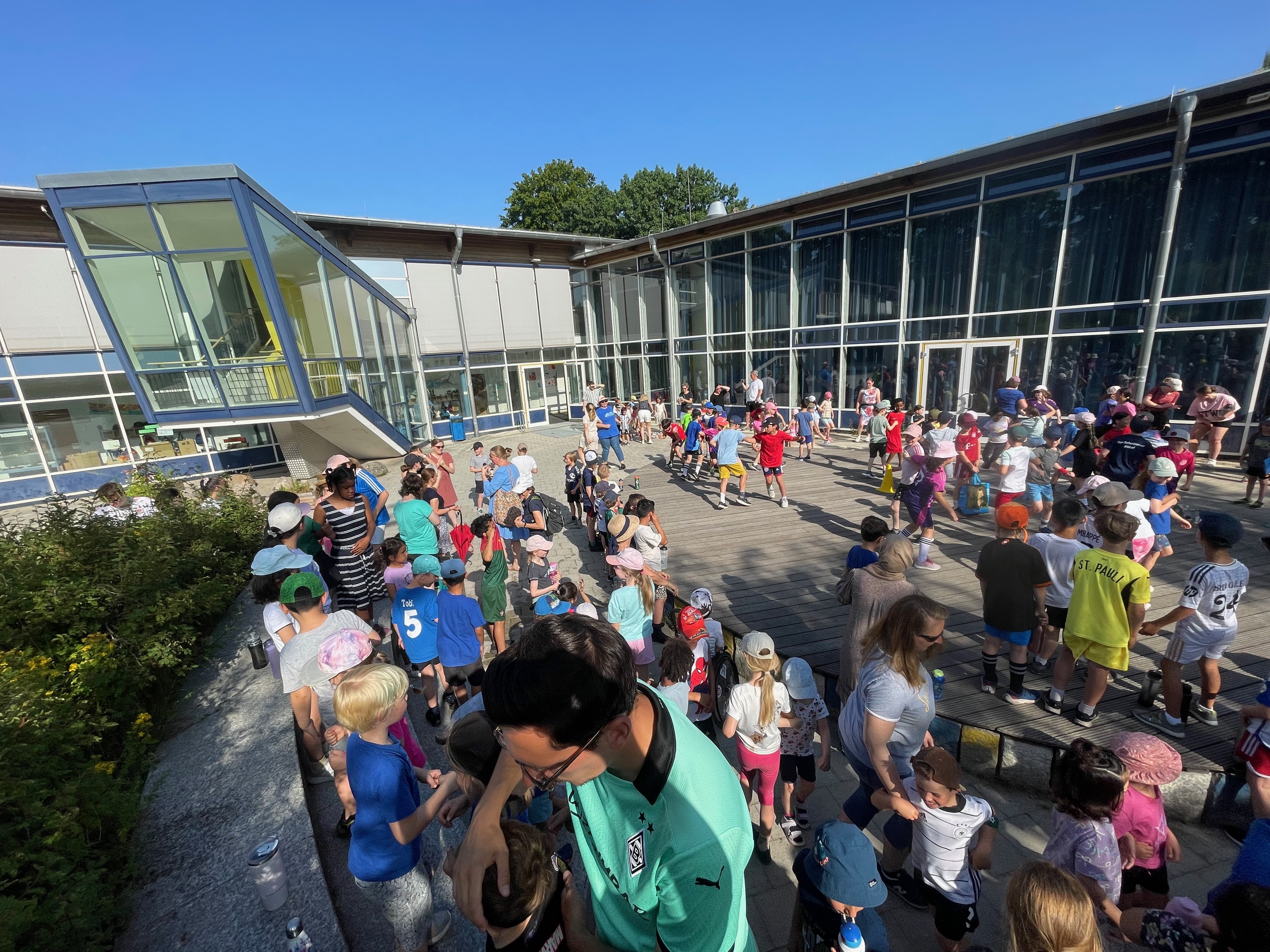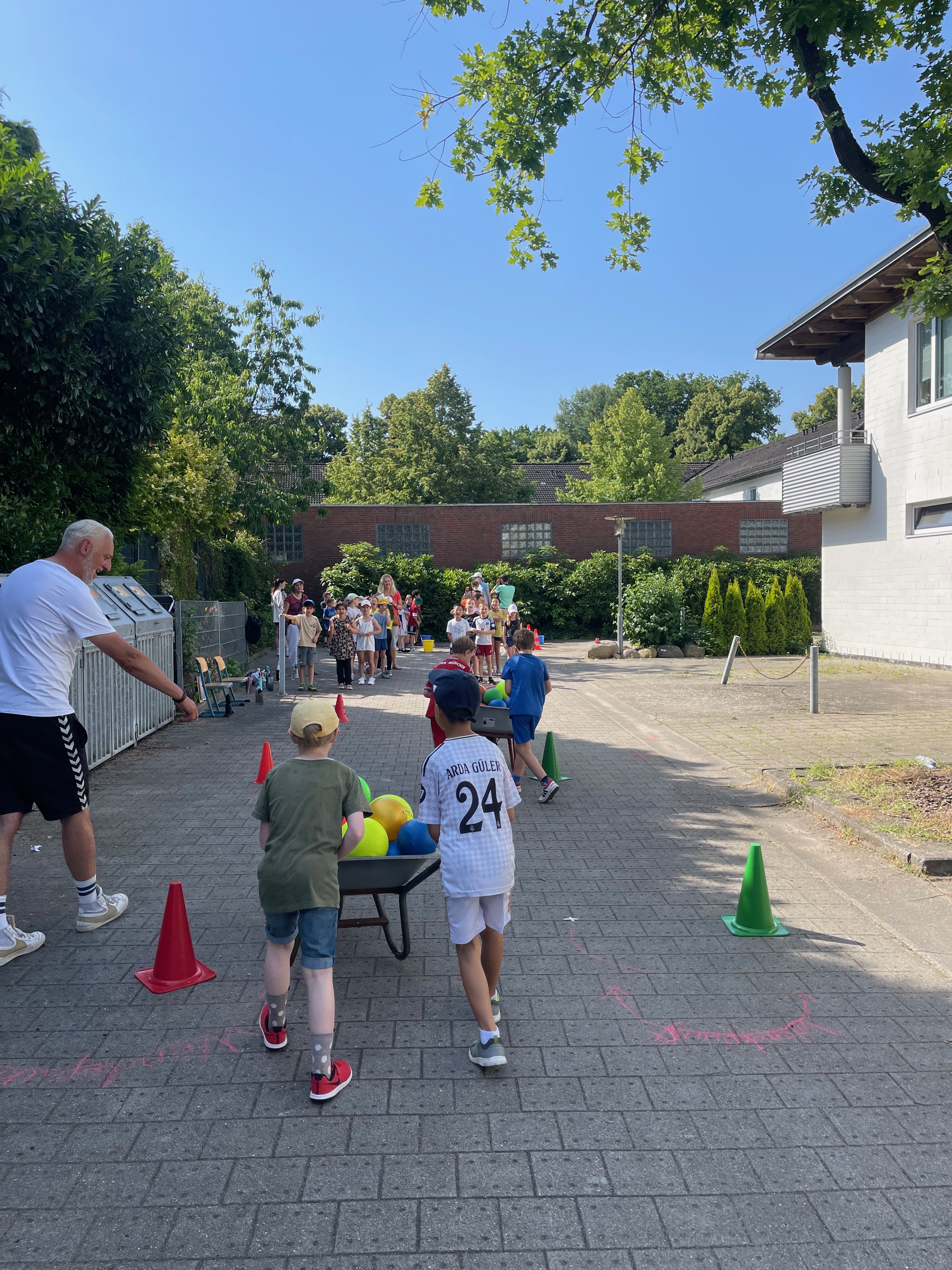Am 2. Juli verwandelte sich unser Schulhof trotz knackiger 35 Grad in eine spritzige Sport-Arena: Acht Stationen, ein buntes Buffet (von unseren engagierten Eltern liebevoll bestückt und betreut!) und viele helfende Hände machten unser Sport-Spektakel zu einem echten Sommer-Highlight. Besonders danken wir den 11 Schüler-Sportassistent:innen aus der 10. Klasse des Gymnasiums Ohmoor, die uns an den Stationen großartig unterstützt haben – und natürlich auch allen Eltern, die an den Ständen geholfen haben.