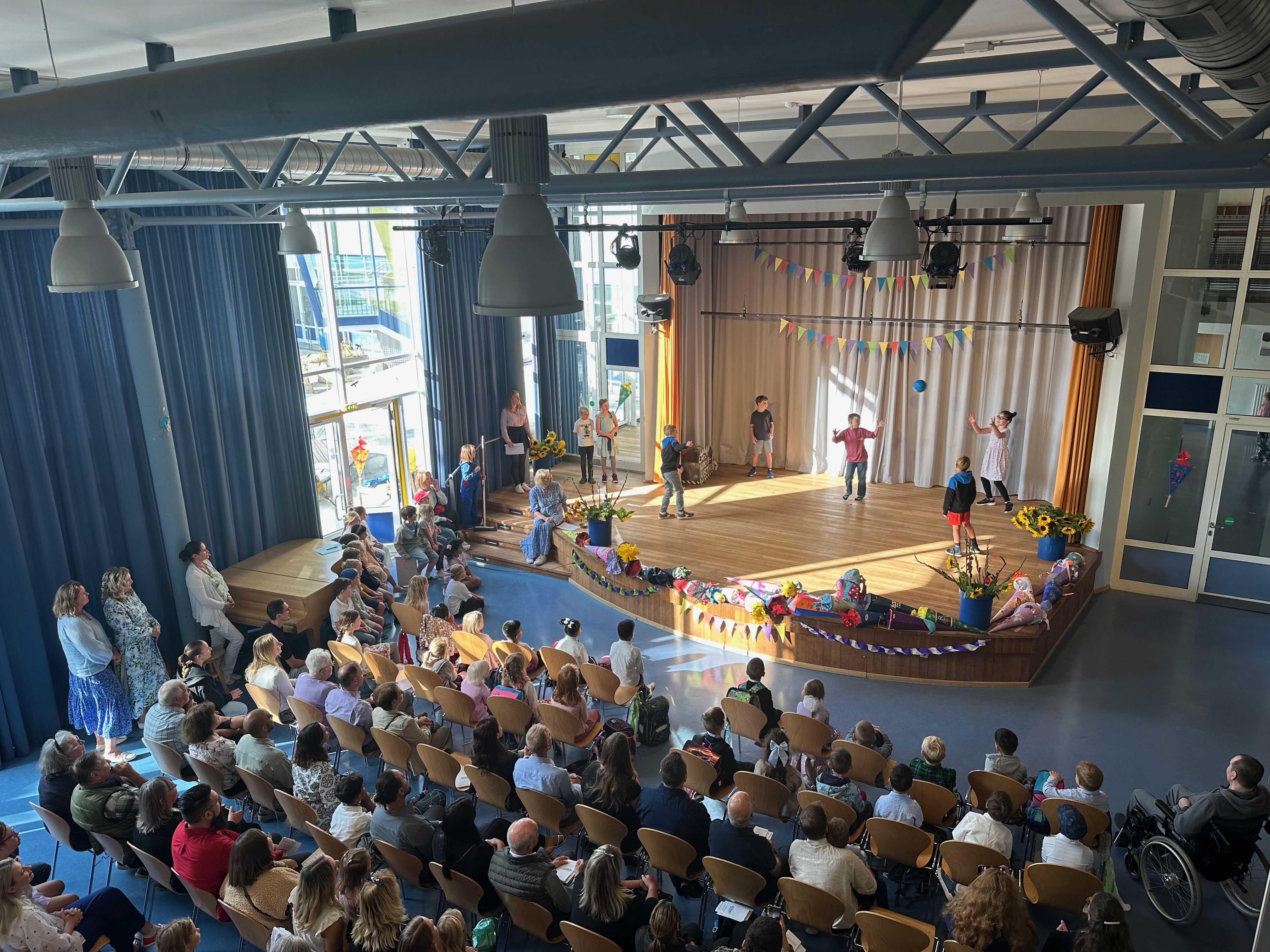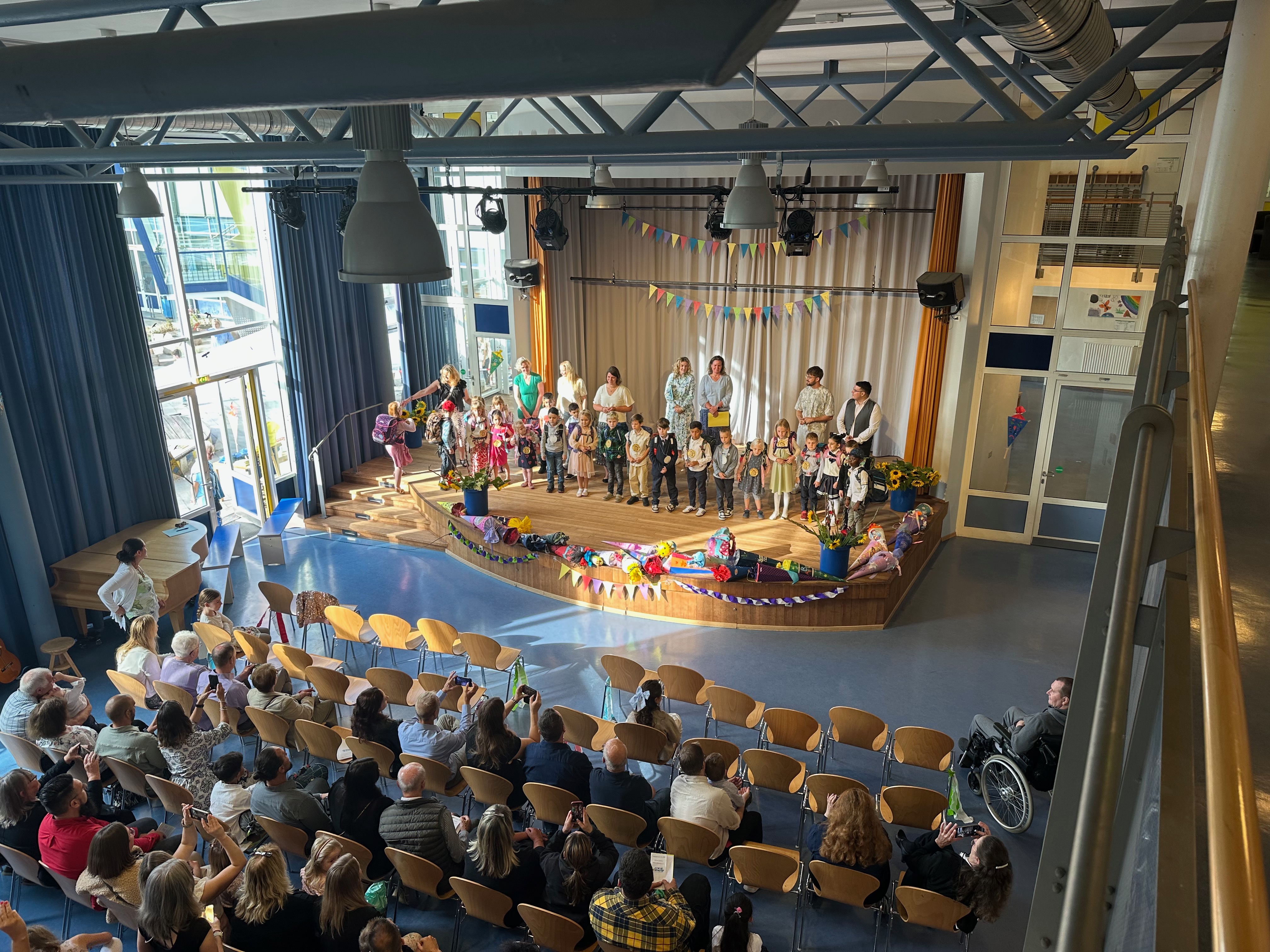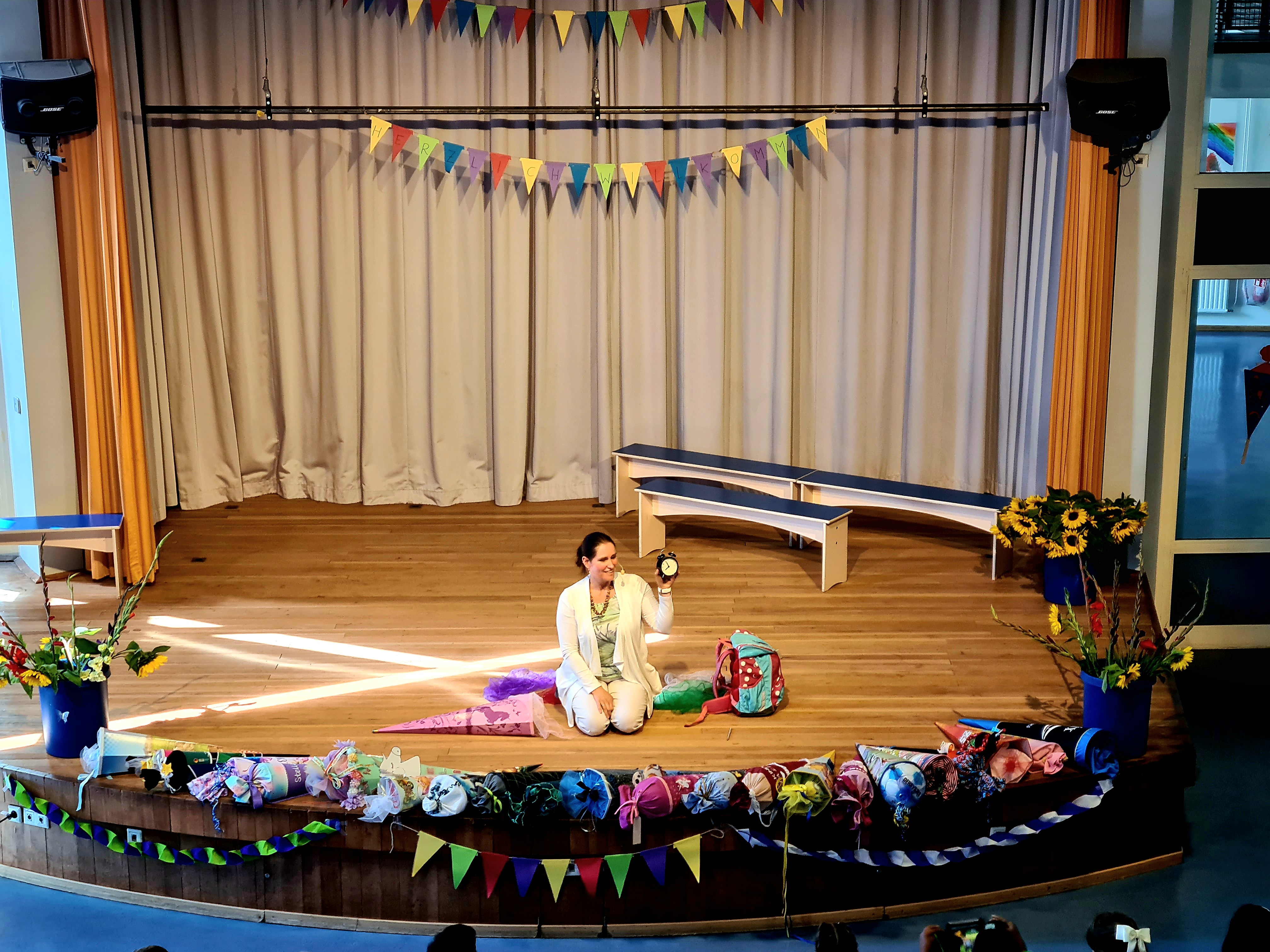Ein ganz besonderer Tag: Unsere neuen Erstklässlerinnen und Erstklässler sind bei uns angekommen! Mit einer fröhlichen Rede – und einer großen Schultüte, die sie liebevoll auspackte – begrüßte die Schulleiterin die Kinder und ihre Familien. Die Patenklasse hatte ein kleines Theaterstück vorbereitet, das die Bühne mit Leben füllte und für viele leuchtende Augen sorgte.