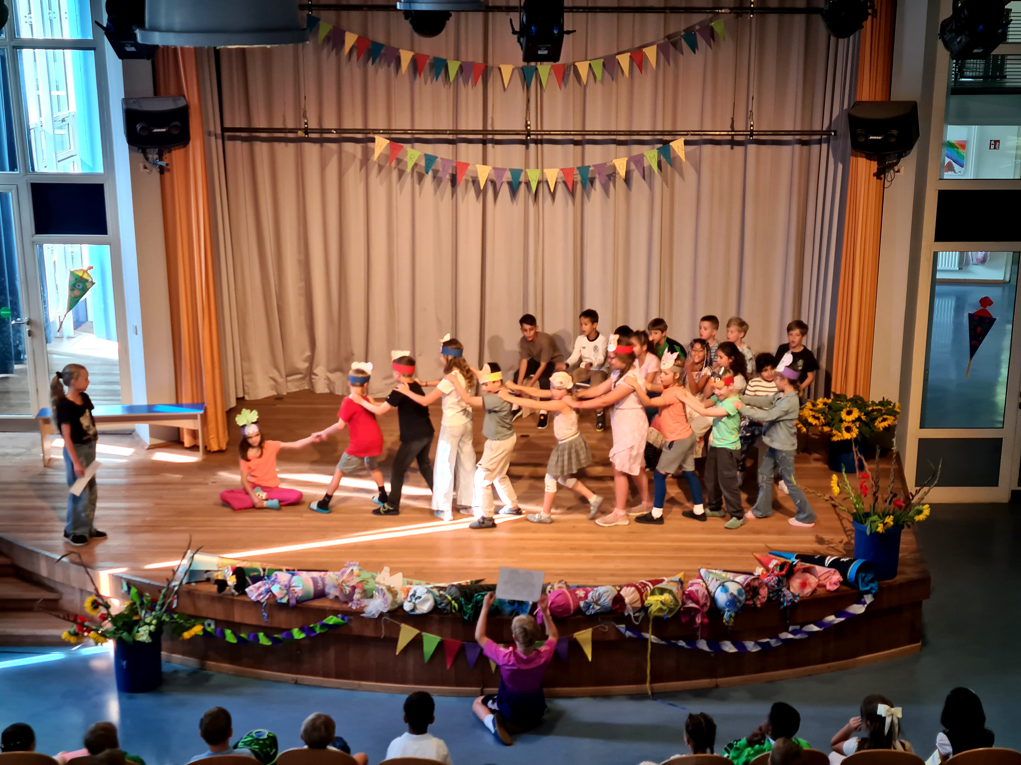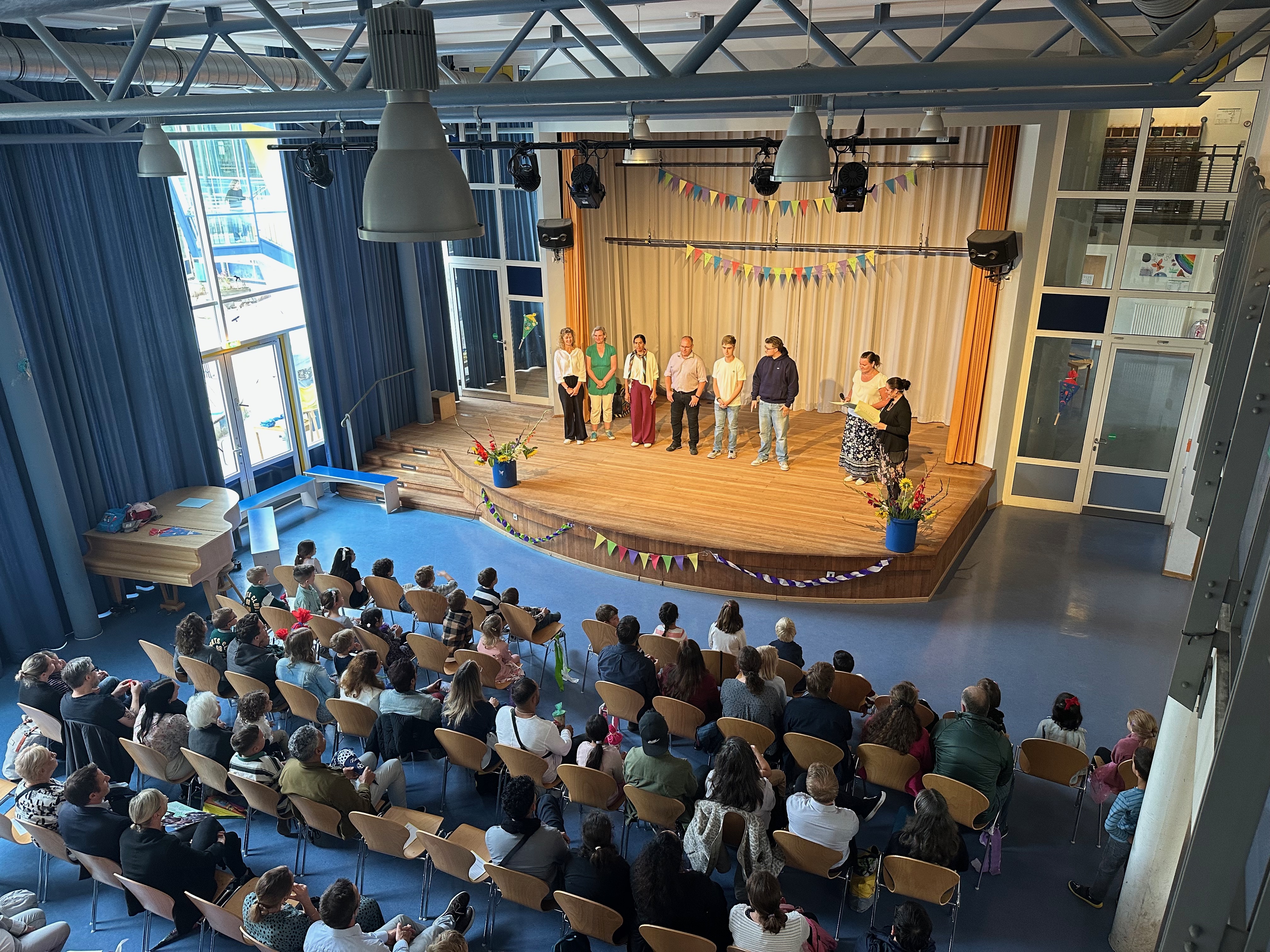 Ob beim Staunen über die Bühne, beim ersten Schnuppern in die Klassenzimmer oder beim gemütlichen Austausch bei Kaffee und Kuchen: Die Vorschulkinder konnten spielerisch eintauchen in das neue Abenteuer Schule. Schön, dass ihr da seid – wir freuen uns auf euch!