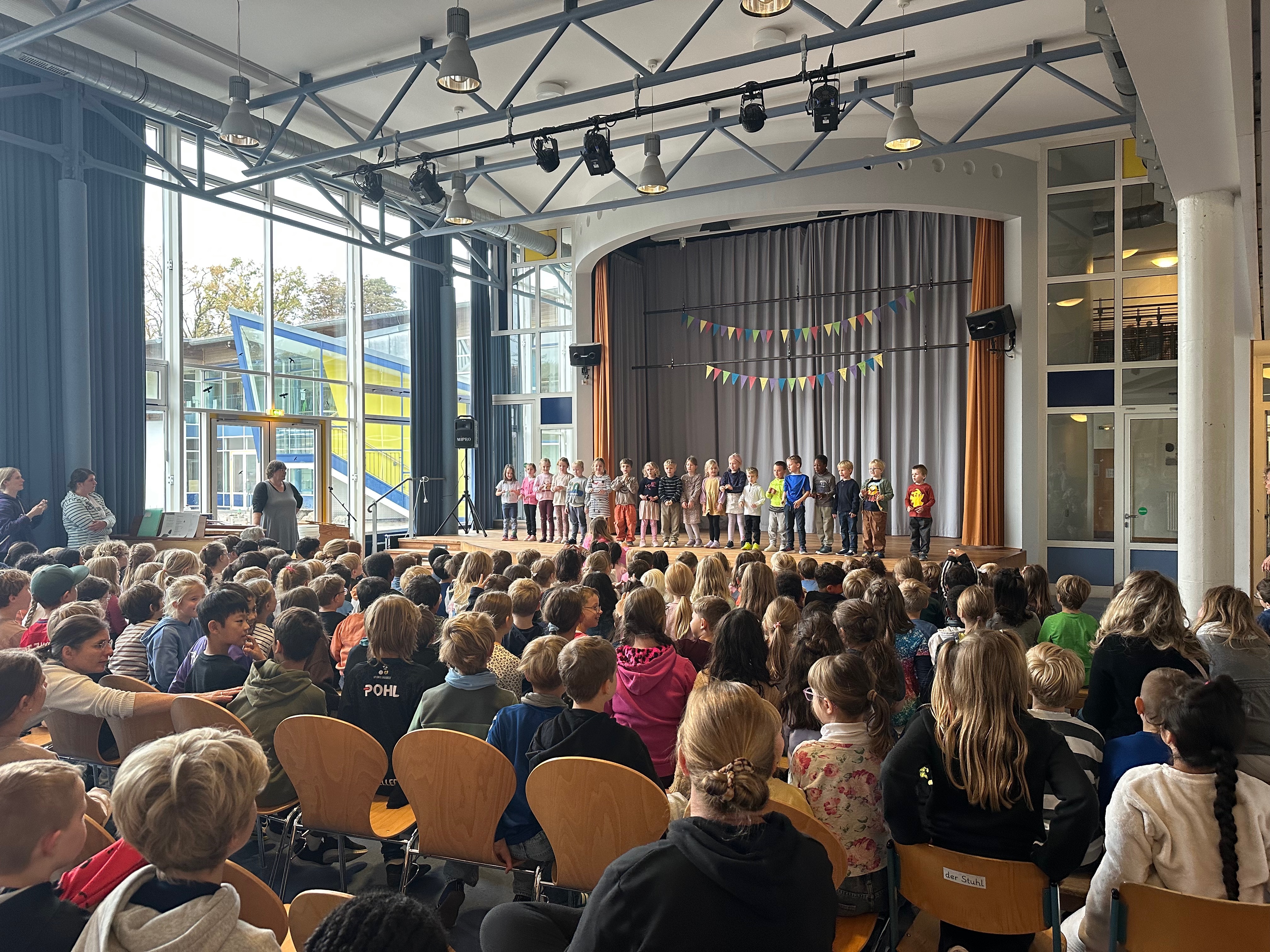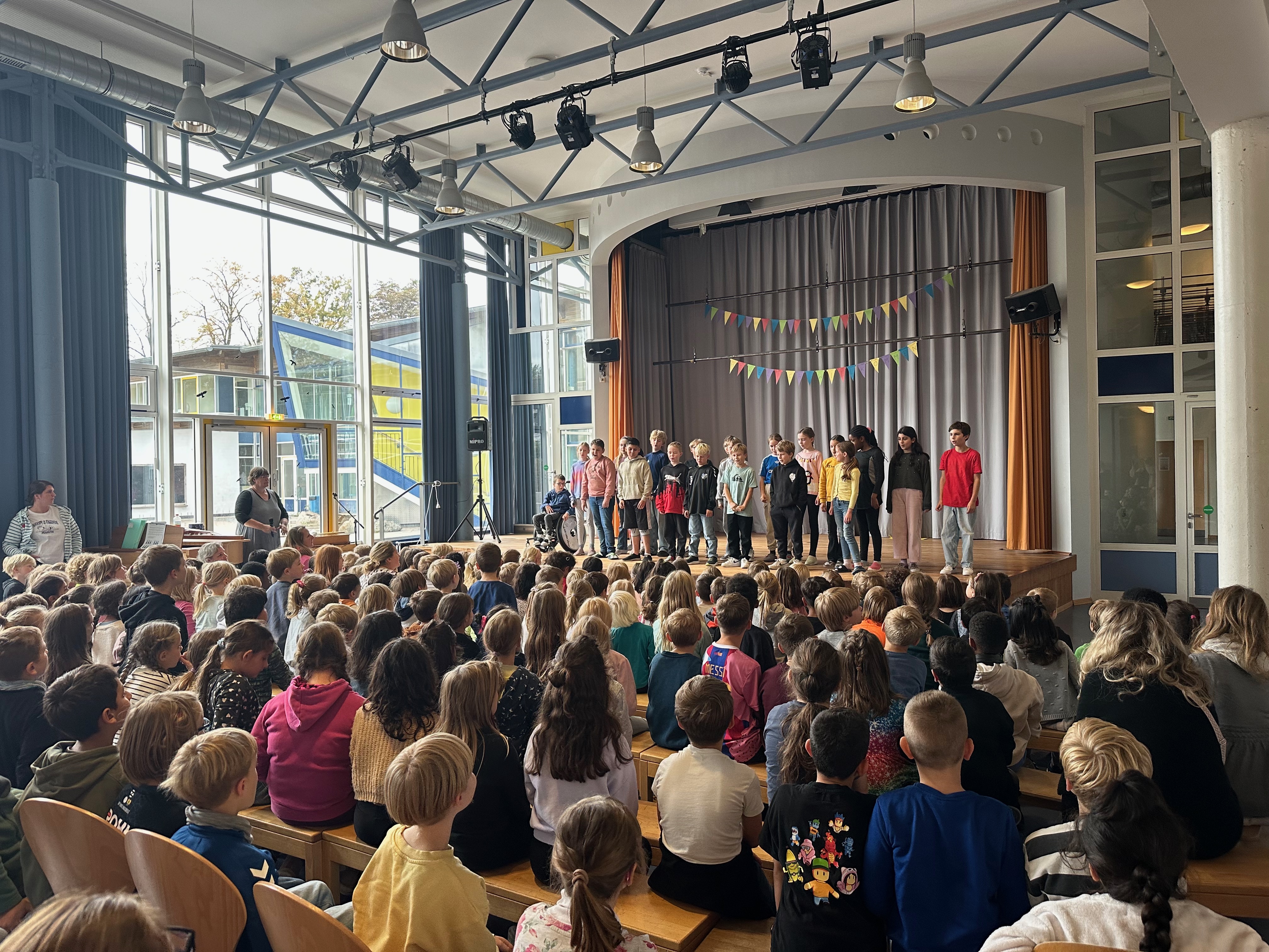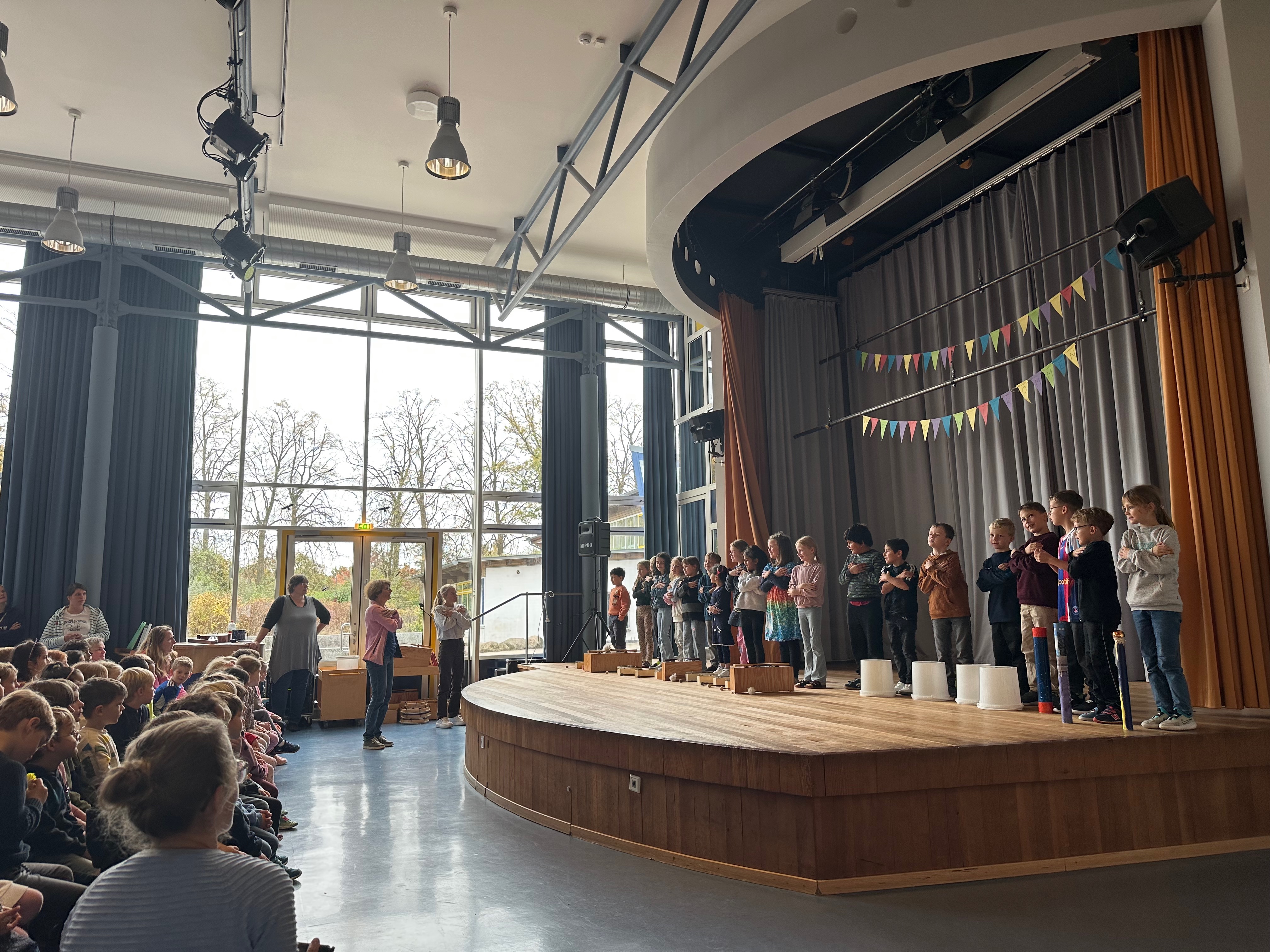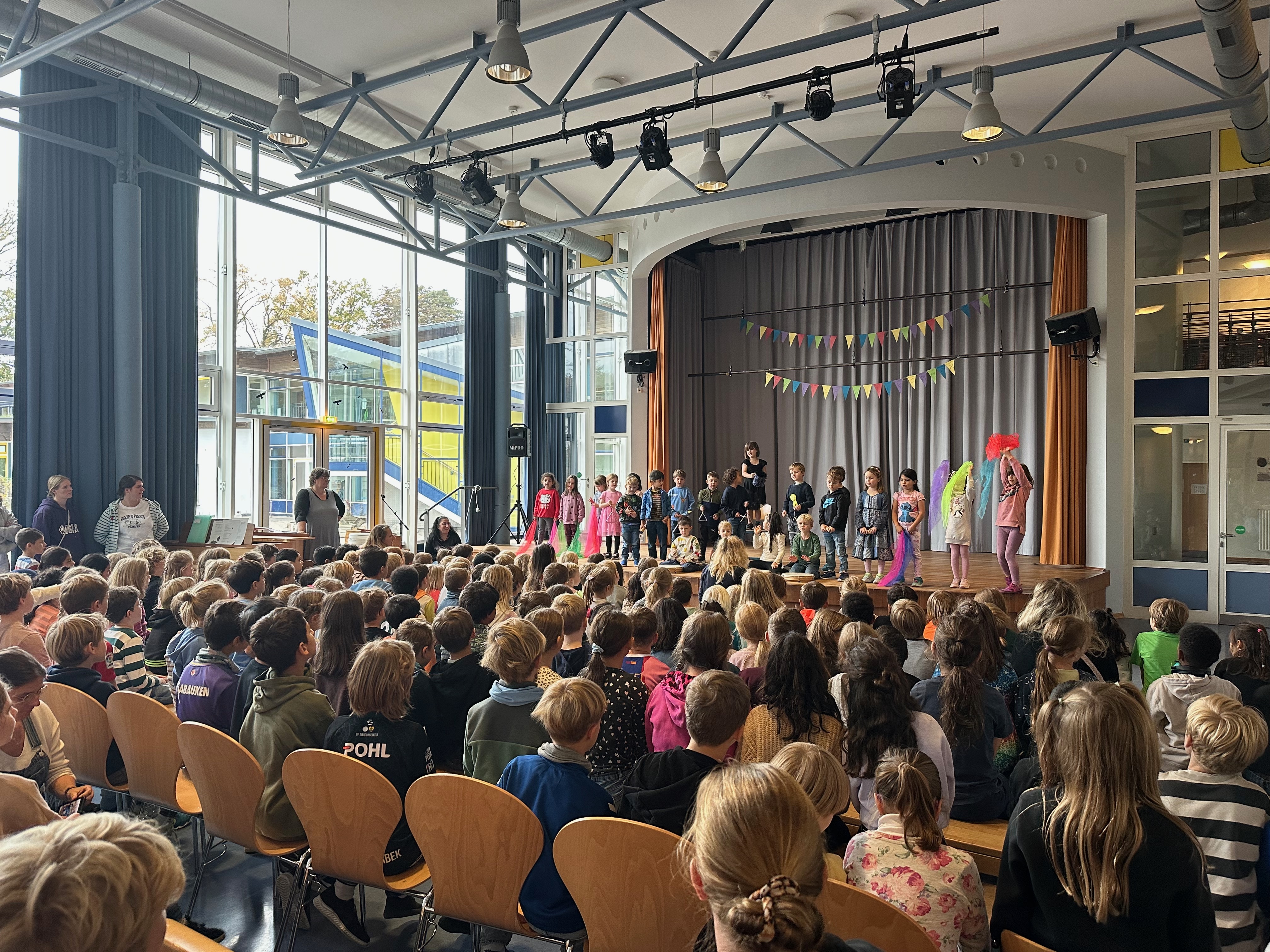 Mit Klang, Bewegung und einer Prise Herbstzauber haben die Klassen unsere Bühne zum Leuchten gebracht. Es wurde getrommelt, gerappt und auf Englisch gesungen – voller Freude und Stolz zeigten die Kinder, was sie gelernt haben. Ein herzliches Dankeschön an alle kleinen Künstlerinnen und Künstler für diesen stimmungsvollen Auftakt in den Herbst!