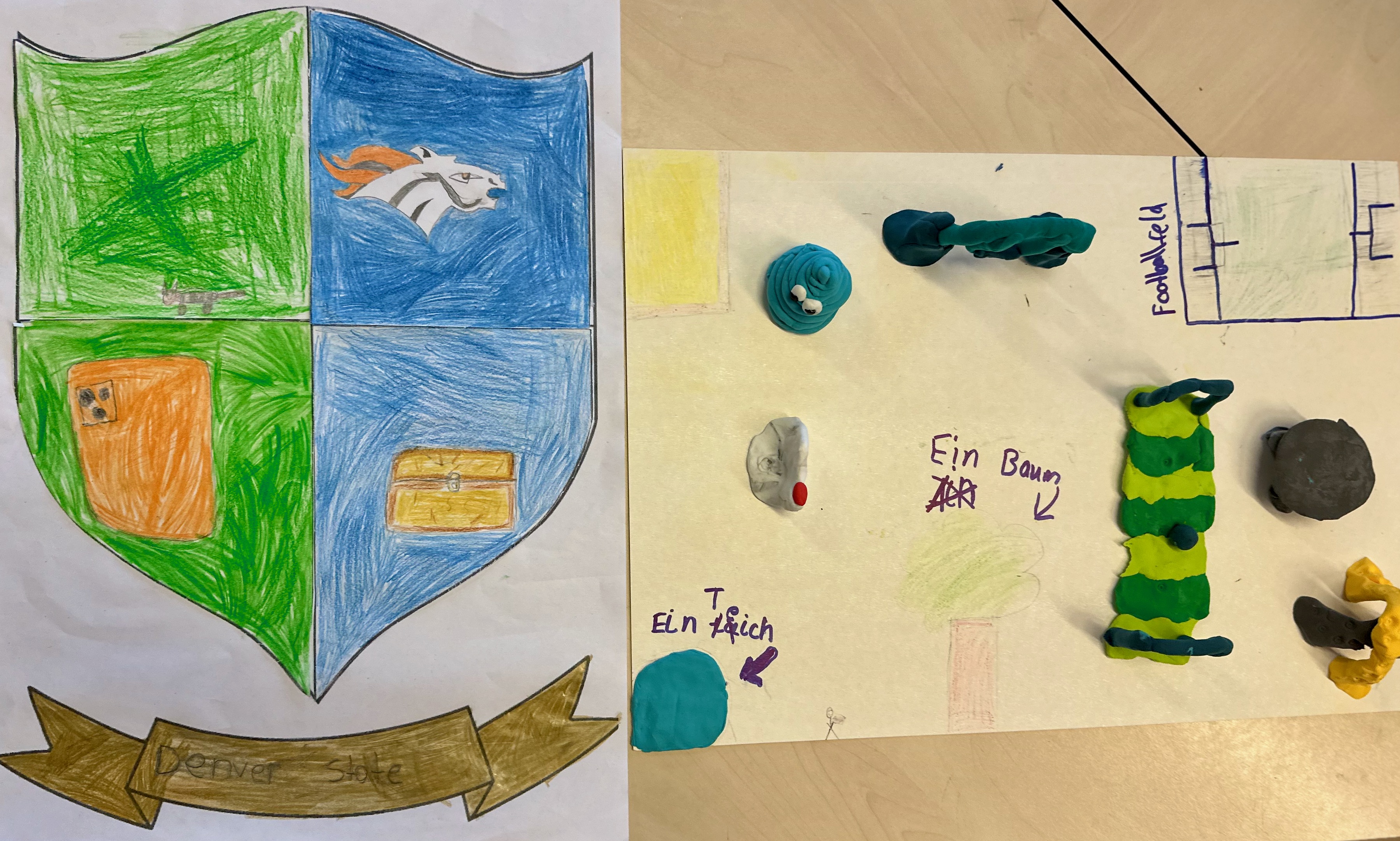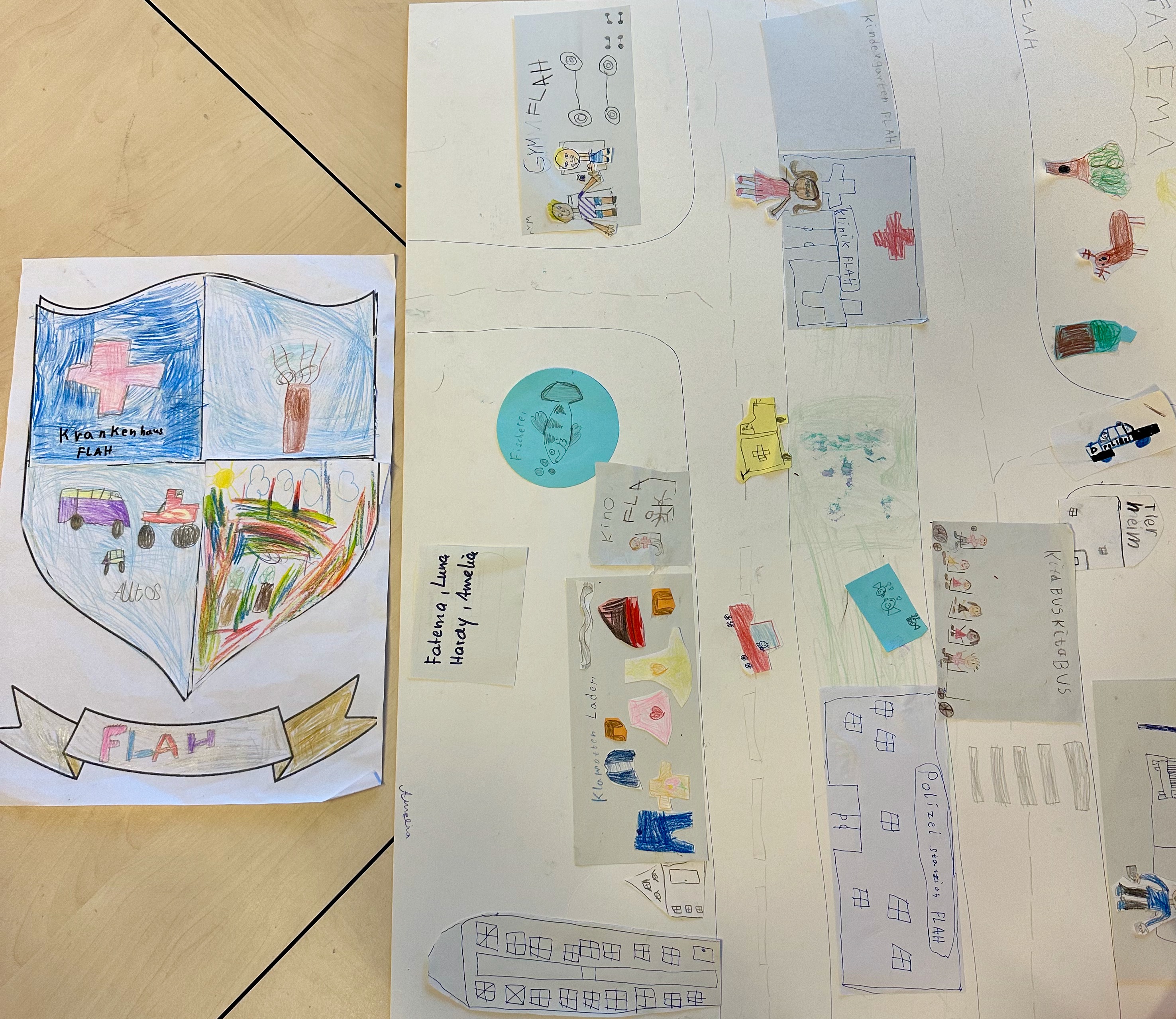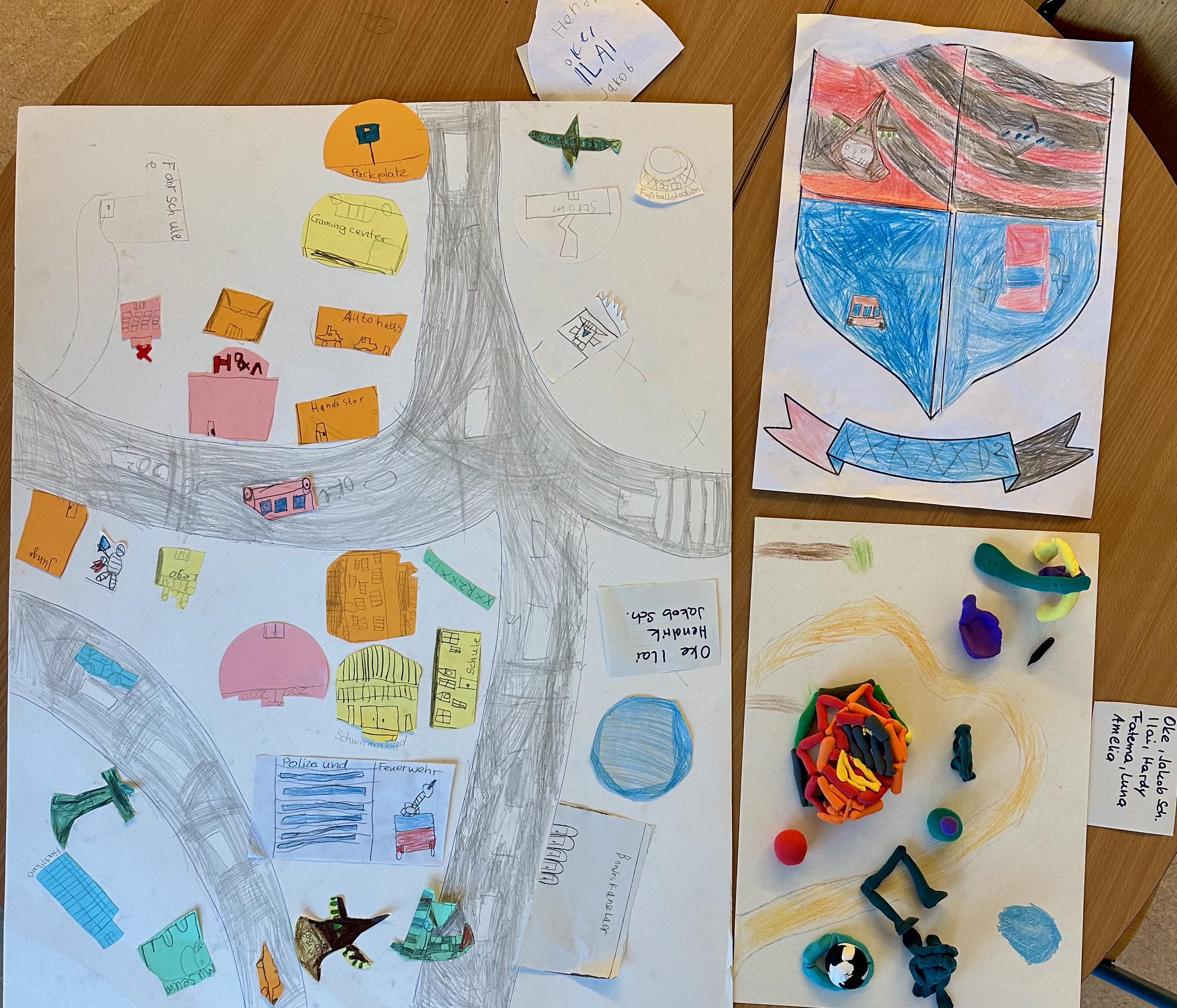 Am dritten Tag durften wir für unseren erfundenen Stadtteil ein eigenes Wappen gestalten. Das war richtig lustig und wir waren sehr kreativ.
